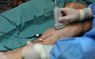 Суть метода – воздействие лазерным излучением на кровь, находящуюся в просвете вены. Хирург-флеболог вводит катетер с лазером в вену с помощью небольшого укола, проводит световод по ходу сосуда и полностью закрывает вену. В скором времени вена рассасывается. Лазерная коагуляция позволяет избежать разрезов и шрамов, проводится под УЗ-контролем и практически безболезненна.